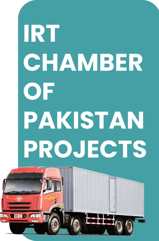 International Road Transport (IRT) Chamber of Pakistan is an advisory chamber, formed to represent its members and to provide legal, commercial and other technical, professional advisory and consultancy services against remuneration, fee and charges to its clients who become its regular members, and against the annual membership fee.